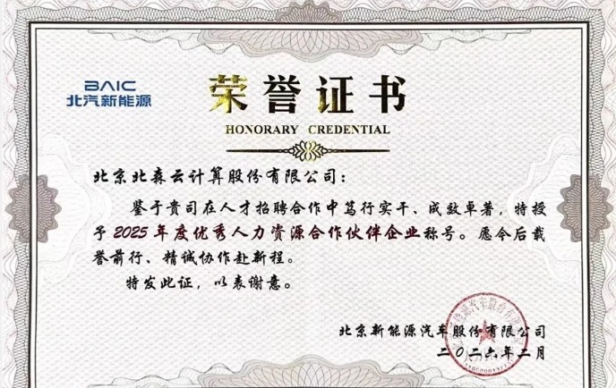 近日,北森斩获北汽新能源颁发的 “2025年度优秀人力资源合作伙伴企业” 称号。这份荣誉,是北汽新能源对北森在人才招聘合作中笃行实干、成效卓著的高度认可,更是双方携手筑牢人才根基的坚实见证。